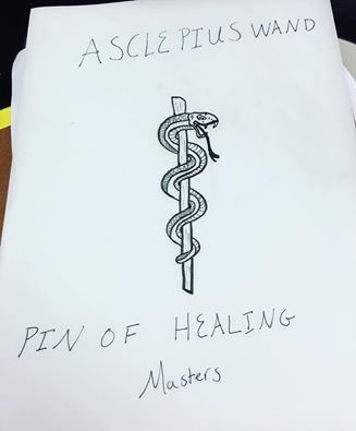 Asclepius Wand also known as the Staff of Asclepius (sometimes also spelled Asklepios or Aesculapius) and as the asklepian, is a serpent-entwined rod wielded by the Greek god Asclepius, -a deity associated with healing and medicine. Because of that Healing Masters choose this very common symbol for their pin. Though most Masters going into Healing some do teach. Most Healers do have at least Two additional Masteries as their ‘specialties’.