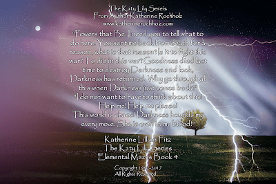 Katy was up the next day and sitting at the kitchen table with her books again.  She sighed.  She did not want to be part of this tournament but she had to try.  If she was not picked, she was not picked, but if she was… well all things happened for a reason.  She closed her eyes.  “Powers that Be, I need you to tell what to do here.  You sent me back from death for a reason, what is that reason?  Is it to fight this war?  To die in this war? Goodness died last time to destroy Darkness and look, Darkness has returned.  Why go through all this when Darkness just comes back?”  She sighed.  She did not expect an answer.  “I do not want to have to think about this!”  She suddenly yelled out loud.  “Help me!  Help me please!  This world is chaos!  Darkness hounds my every move!  She is even in my blood!”